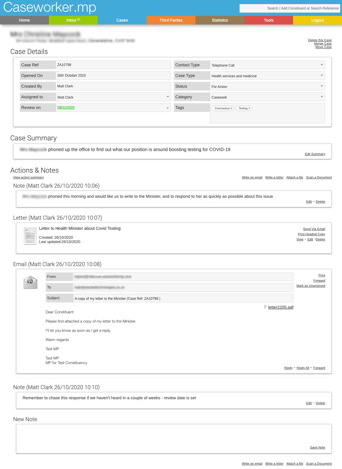 Every office knows what it's like to have a constituent who needs help with a long running problem, or how difficult issues always re-emerges after a quiet few months. It'll naturally be hard to remember exactly what has happened previously, who's done what or what the latest information is. With Caseworker, because you have your case history so clearly set out you'll be able to quickly catch up with what's been going on whenever you come back to it