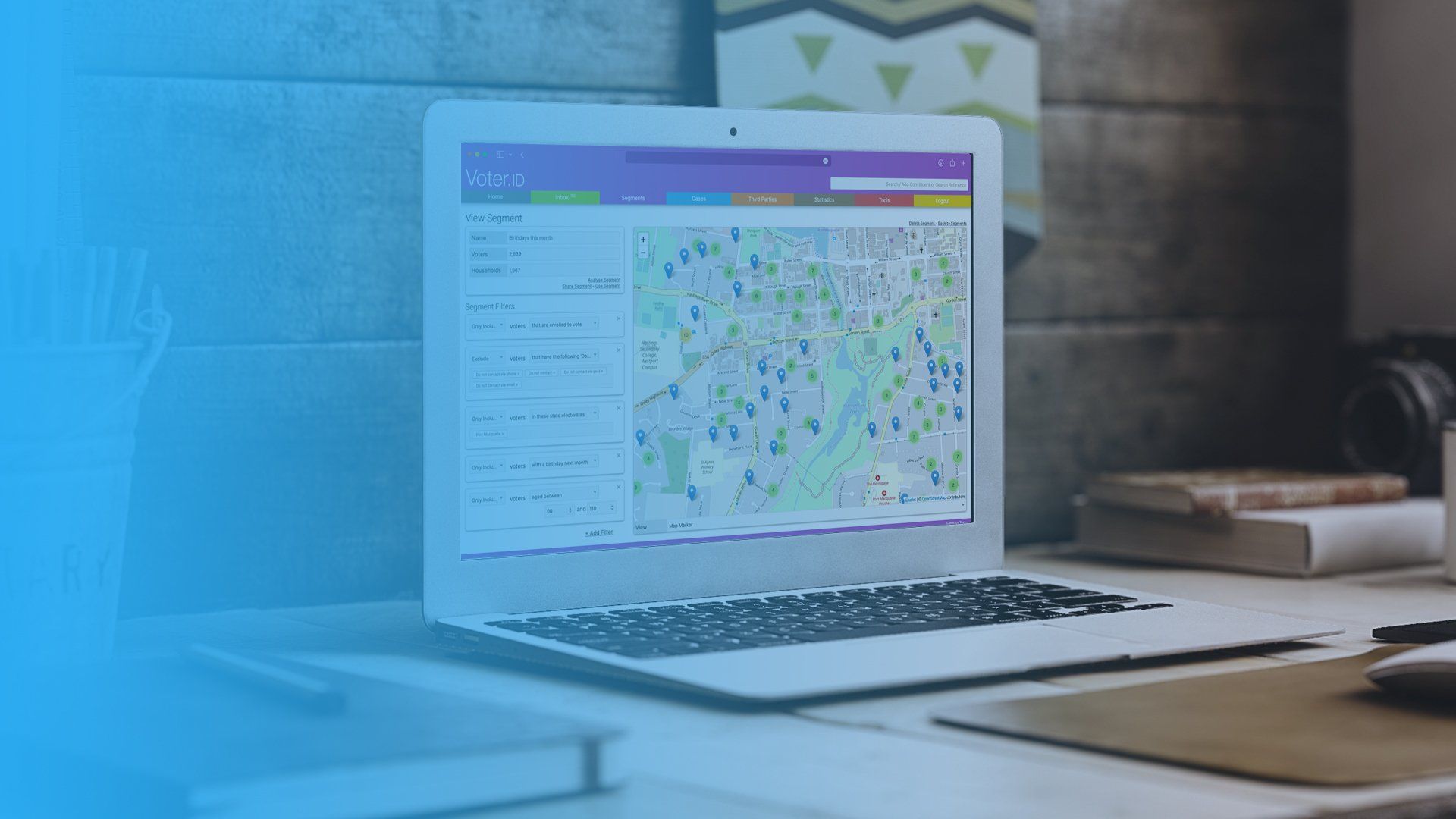 The system provides a number of tools to give you insights into your cases. The first is our cases map. Each time you log a new case on a constituent, a new pin will be placed onto your map. You can then see at a glance which areas are providing you with the most cases. Even better, you can filter the map by case type to look more specifically at what’s going on.