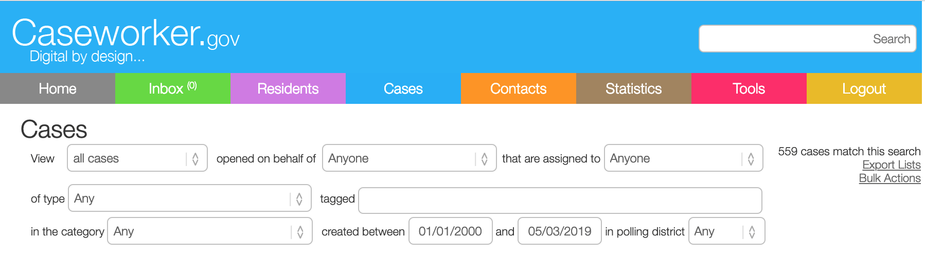 Another area Caseworker helps deliver insight is through the cases page. You can use this page to see all the cases you’ve created in a particular time period, about a particular issue, or any other combination of the filters were provide. You can either use this to look at cases within the system, or you can even export out all the relevant information to look at outside of Caseworker.